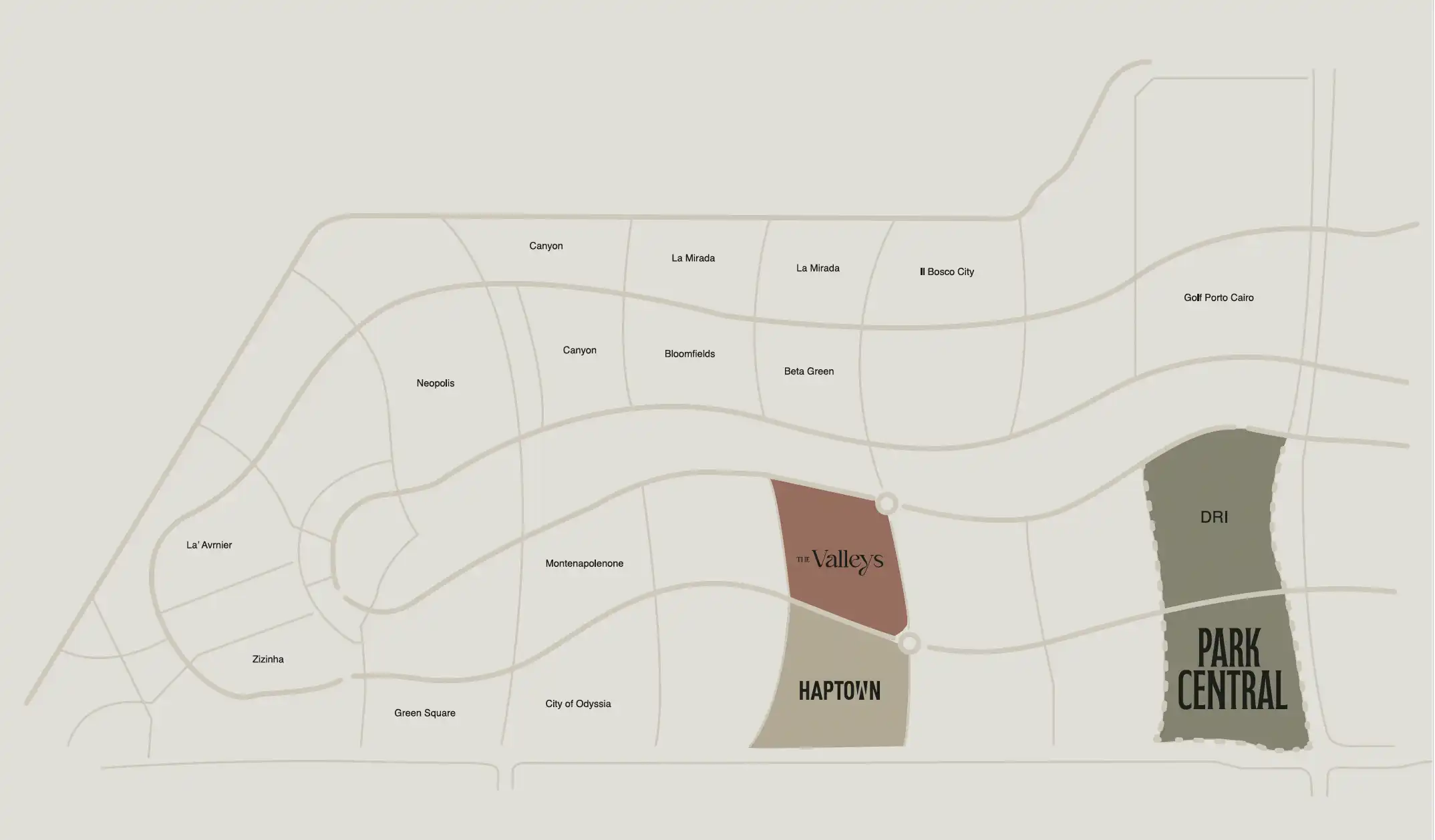 يقع بارك سنترال في موقع حيوي بمنتصف مدينة المستقبل بالقرب من العاصمة الإدارية الجديدة.